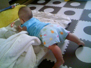 寝がえりもまだ右回りしかできないから、ごろごろ転がるのはまだ無理w