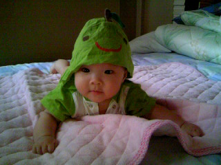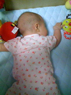 写真は風呂あがりに寝返りして遊んでたのが力尽きてぱったりいったところ(笑